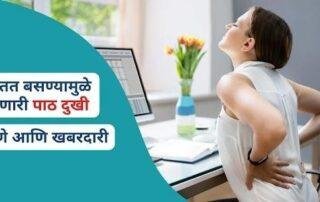 आजच्या तंत्रज्ञानाच्या युगात, जिथे अधिकतर कामकाज ऑनलाइन किंवा डेस्कवरील असते, तिथे सतत बसण्यामुळे पाठदुखी ही समस्या जाणवू शकते. पाठदुखी ही समस्या गंभीर समस्या होऊ शकते त्यामुळे वेळीच खबरदारी घेणे महत्त्वाचे आहे.आज आपण सतत बसल्यामुळे होणाऱ्या पाठ दुखीची काही कारणे आणि खबरदारी घेण्याचे काही उपाय बघूयात… सतत बसण्यामुळे होणाऱ्या पाठ दुखीची कारणे : सतत